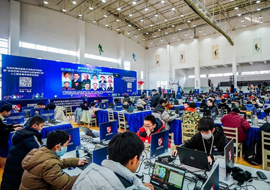 在苏州主赛场里,每个区域的选手被分成两排,一人操作一台笔记本电脑,相邻的选手被蓝色的隔板隔开,像是在参加一场电竞比赛,比赛开始后,赛场内只能听到键盘的敲击声,但看似平静的赛场其实已经“硝烟滚滚”。